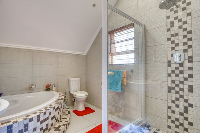 Relaxed Manor Estates living with a private garden, veranda and braai pit, plus communal pool and playground; airy 3-bedroom, 2-bath townhouse with double garage and solar heating.