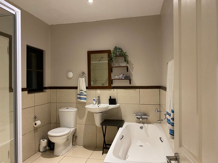 Relaxed family living in a quiet cul-de-sac within a pet-friendly, secure estate close to shops, school and hospital — enjoy distant sea views and a private pool with entertainment area.