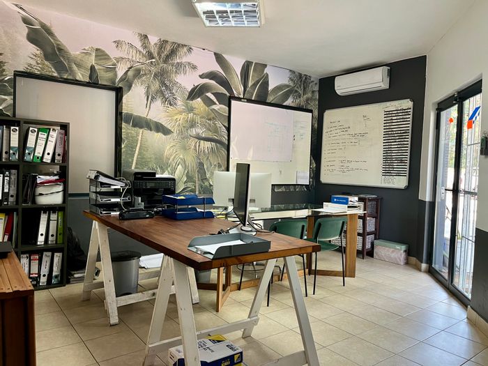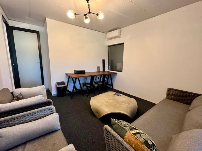 Flexible startup workspace with communal chill area and kitchenette, situated on a major route for quick access to Ballito central and the N2; guarded complex, ample parking, bathroom included.