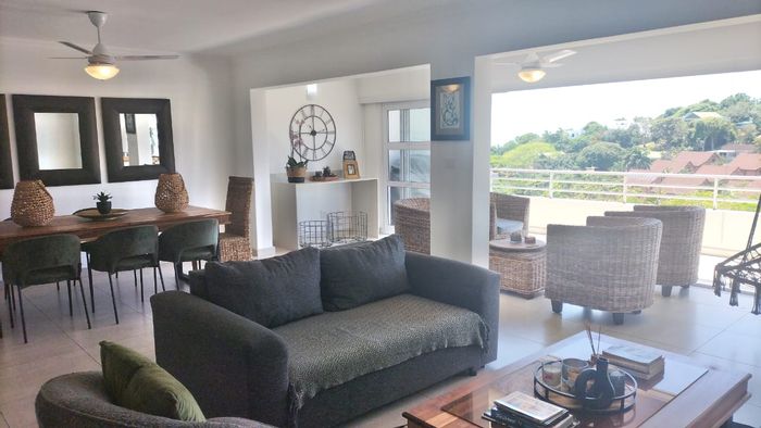Relaxed coastal living near Willard Beach in Ballito, set within a secure lifestyle estate with pools and courts. Large veranda with sea views; three bedrooms, internal garage access.