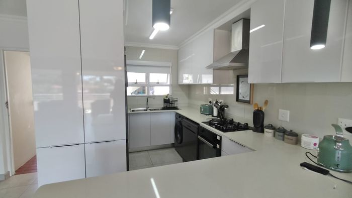 Beachside living with panoramic sea and valley views, steps from Thompson's and Willard's Beach. Glass-enclosed balcony and modern kitchen with gas hob; 3 bedrooms, 2 bathrooms, single garage plus parking bay.