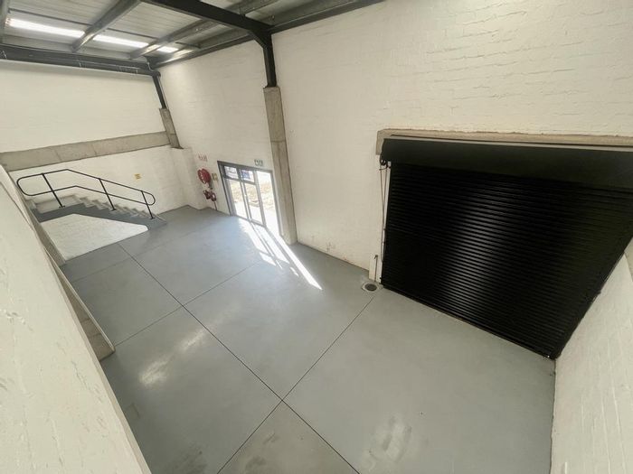 Secure unit in Cornubia Industrial Estate, NW of uMhlanga, with 24-hour manned security and onsite coffee shop; roller shutter, mezzanine, three-phase power, abundant natural light. 132sqm, two parking bays.