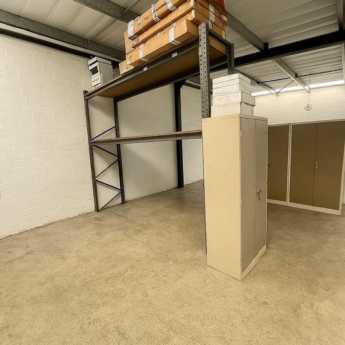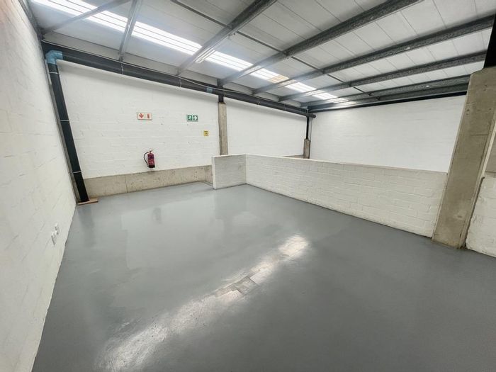 Secure unit in Cornubia Industrial Estate with 24-hour security, on-site coffee shop and easy M41/N2 access — mezzanine, roller shutter, bright 215m², three-phase power, 1 bath, 4 bays.