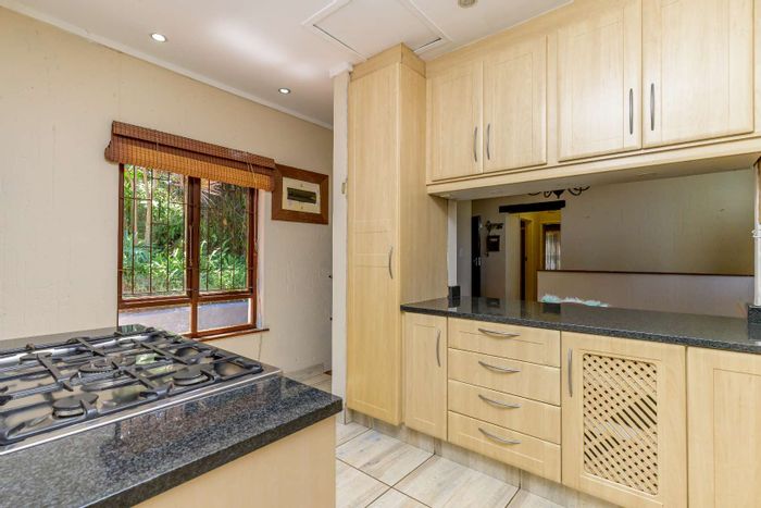 Entertain effortlessly in a family-friendly leafy suburb with poolside undercover braai and manicured garden; 4-bedroom main house, 2-bedroom guest cottage, three baths and double garages.