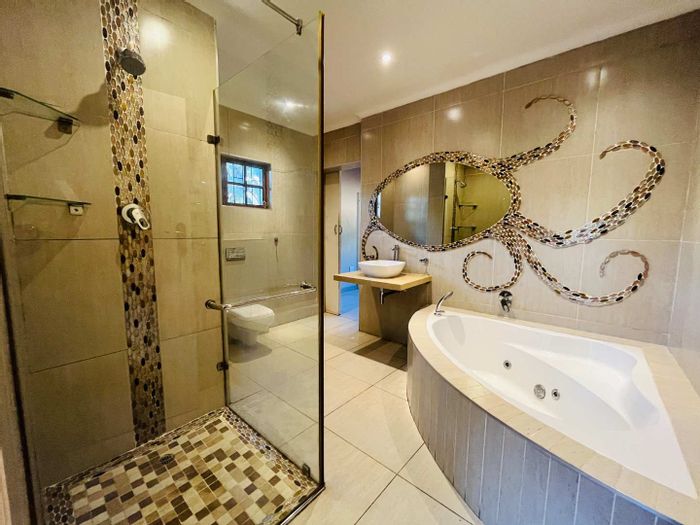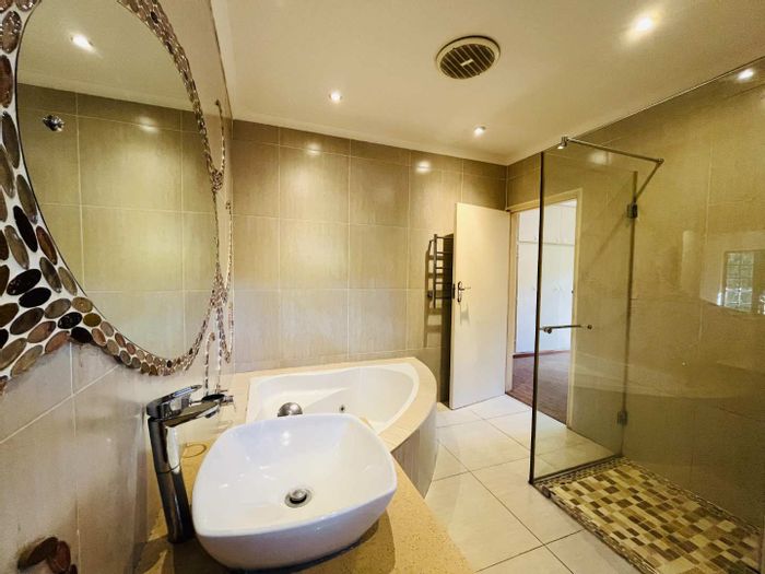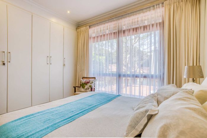 Entertain effortlessly in a family-friendly leafy suburb with poolside undercover braai and manicured garden; 4-bedroom main house, 2-bedroom guest cottage, three baths and double garages.