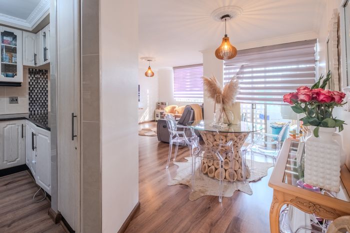 Relaxed, secure living in a leafy, well-maintained complex with pool and braai; elegant enclosed balcony ideal for morning coffee. Two bedrooms, one bathroom, two parking bays.