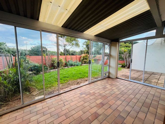 Practical family living in a quiet, secure estate — generous open-plan spaces, private balcony with built-in braai and sunroom, plus separate staff accommodation; three beds, two baths, double garage.