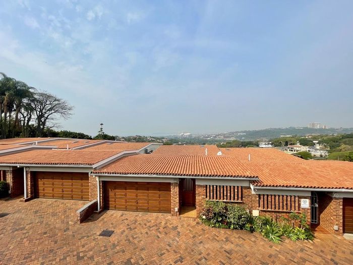 Elevated Umgeni Park townhouse with sweeping sea and city views from kitchen and balcony, renovated with a flexible layout for families or professionals — 3 beds, 3.5 baths, double garage.