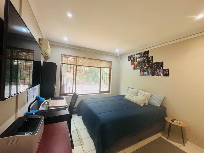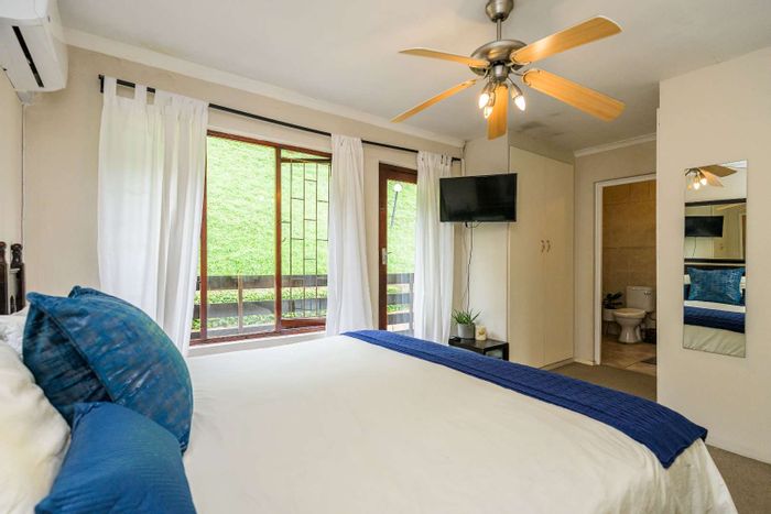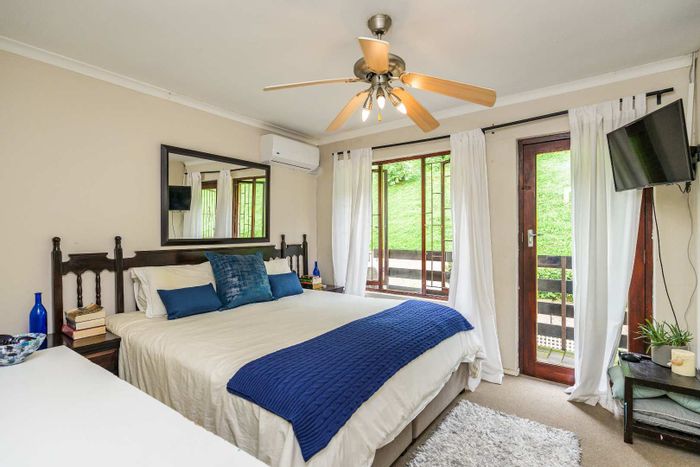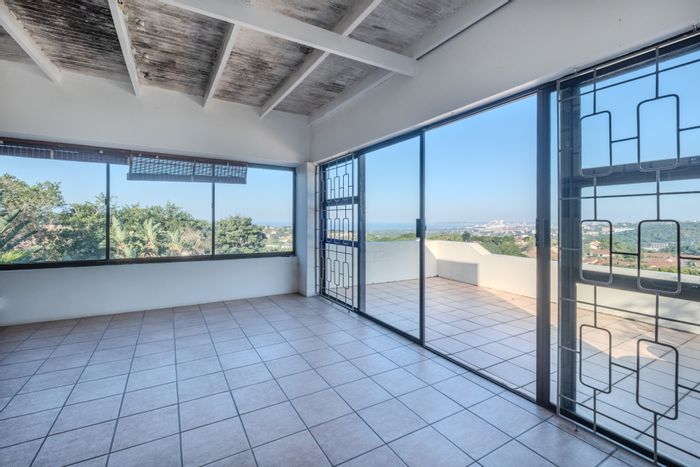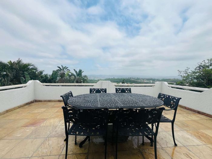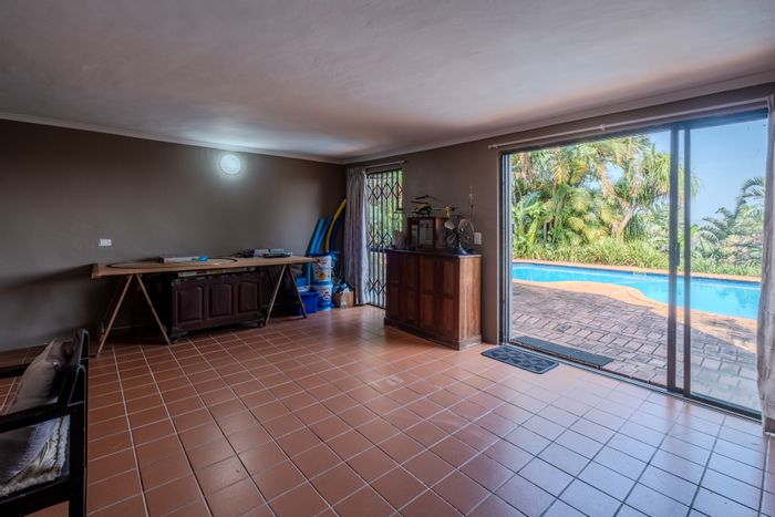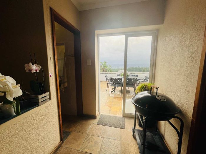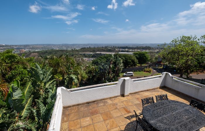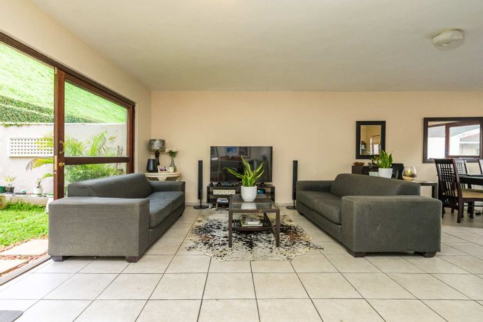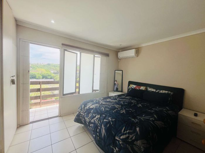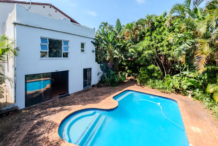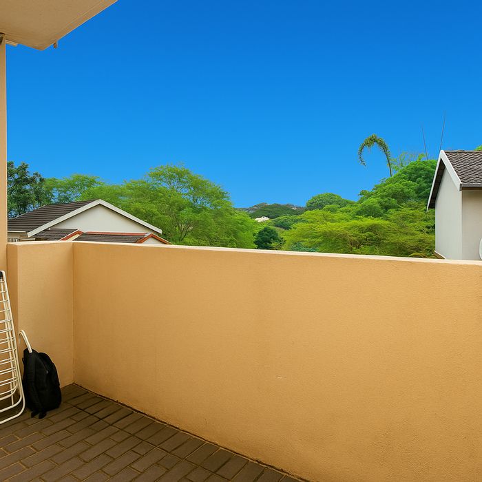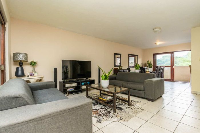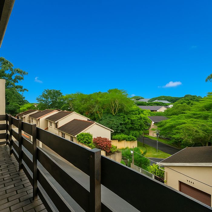 Leafy Umgeni Park retreat framed by birdlife, offering a balcony with sweeping urban views, Caesarstone kitchen, poolside entertainment room, three bedrooms and double garage — ideal for family living.