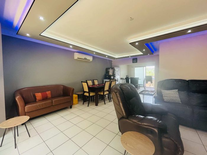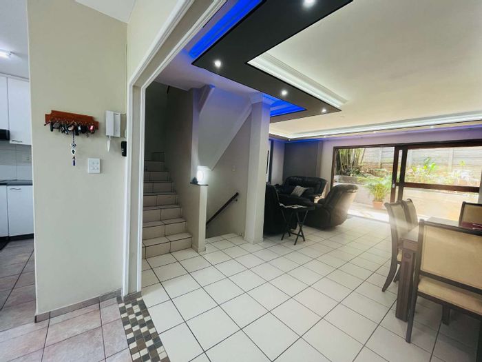 Lovely simplex in Umgeni Park with 3 bedrooms, modern kitchen, private garden, garage, and security features in pet-friendly complex.