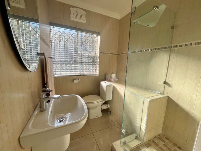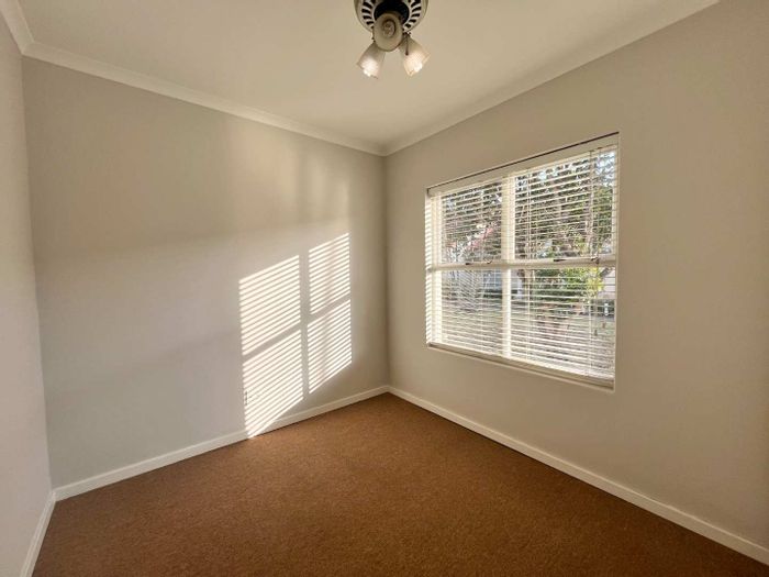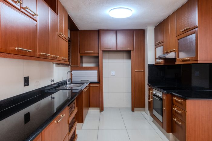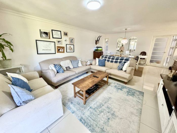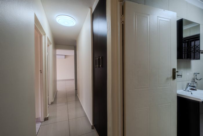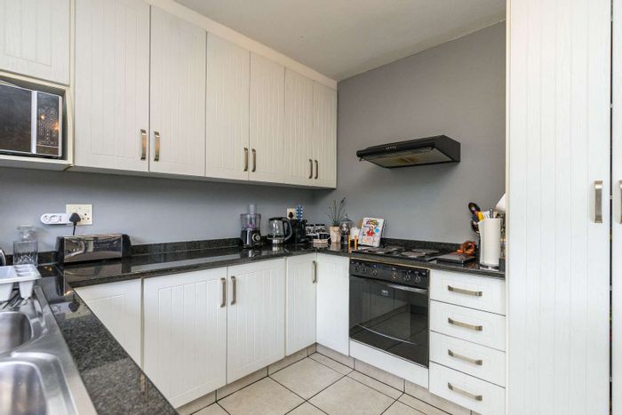 Sunlit, low-maintenance apartment with expansive balcony across lounge and all bedrooms — ideal for braais and sundowners; near shops, schools and major routes. 3 beds, 2 baths, 24-hour guarded complex.
