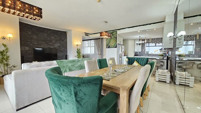 Enjoy coastal urban living at Point Waterfront Durban with panoramic waterfront views, a stylish bar and high-end kitchen — fully furnished four-bedroom, three-bath apartment with balcony and covered parking.