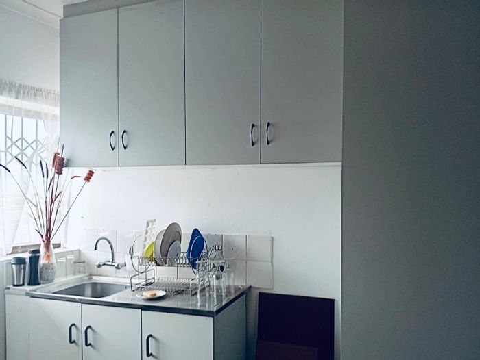 Communal living in upper Reservoir Hills with open-plan lounge and dining, fitted kitchen and one parking bay (second by permission); three bedrooms, one bathroom.