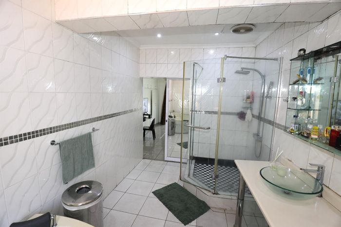 Entertainer’s family home in Reservoir Hills, Durban, with seamless indoor-outdoor flow to balcony and patio, modern fitted kitchen, air conditioning, five bedrooms and double garage.
