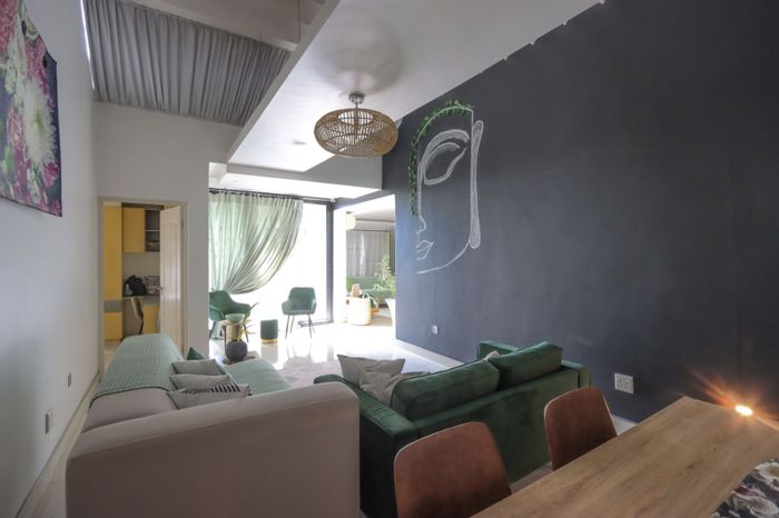 Tranquil family living in Athol Heights, Westville, with seamless indoor–outdoor flow and a manicured garden featuring a babbling brook. Main house 3 beds/3 baths, plus 2-bed suite and covered parking.