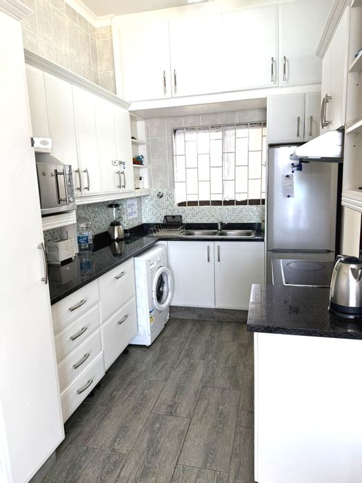 Walk-to-beach coastal retreat in Hibberdene with sea views and communal pool; sold fully furnished for easy move-in. Two bedrooms, 1.5 baths and covered parking.