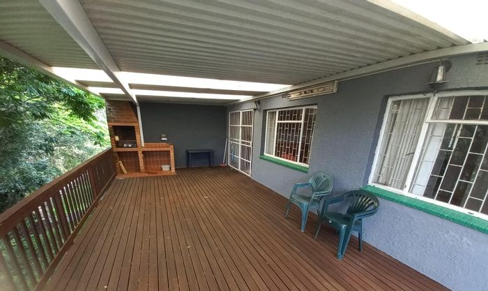 Relaxed coastal living five minutes from Hibberdene Village Mall, beach and Jolly Roger; single-storey townhouse with open-plan living, wooden deck with built-in braai, two bedrooms, one bathroom, pet-friendly, single garage.