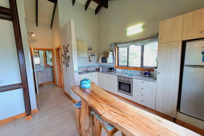 Enjoy relaxed beachside estate living 800m from a blue-flag beach, restaurants and village amenities; A-frame home with bay-window kitchen, covered patio over lawned indigenous gardens; three beds, two baths.
