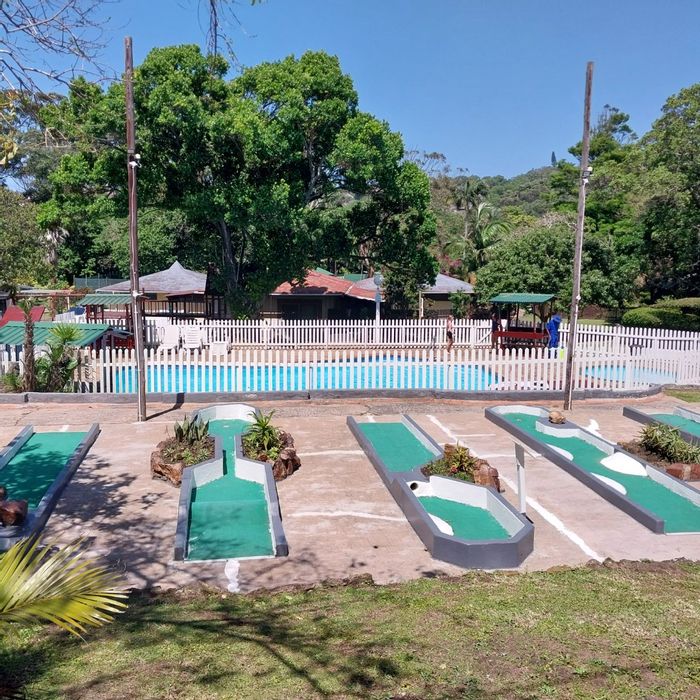 Coastal riverfront living at Hibberdene River Resort, steps from blue-flag beach and river access; enjoy an undercover patio and Wendy house for storage. Two bedrooms, one bath, two covered parking.