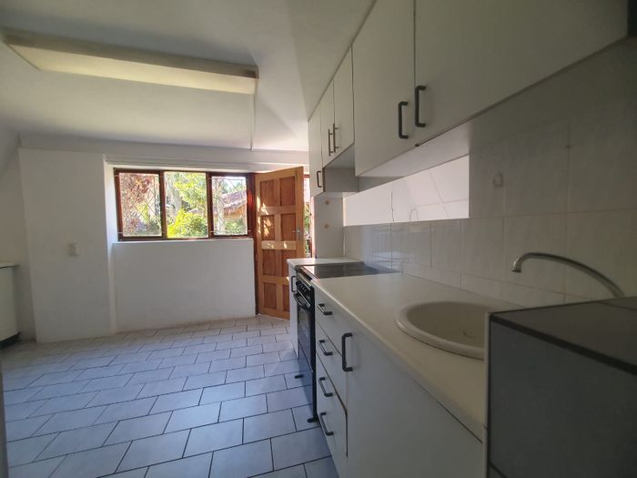 Beachside living in Hibberdene with direct hang-bridge access — enclosed lapa and loft sleeping four, communal pool and braai, one bedroom, one bath, parking for two.
