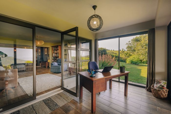 Live among roaming wildlife in The Greater Ambers, north of Howick, with scenic game walks. Open-plan living flows to an enclosed year‑round patio; two beds, two baths, double garage.