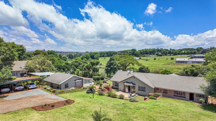 Riverside family living near Howick and Hilton, with sweeping Umngeni River views, sun-drenched garden and pool, modern kitchen with island, two-bedroom granny flat and three carports.