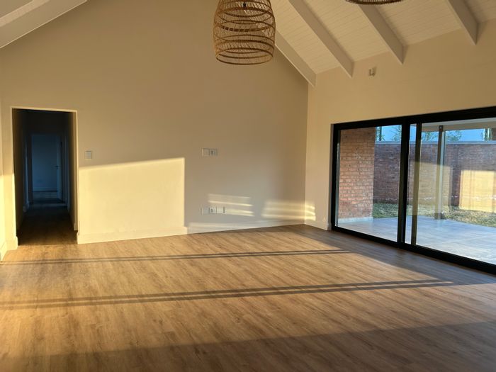 Relaxed Midlands estate living in Hilton’s St John’s Village — scenic walking trails, clubhouse and vineyard views over roaming Nguni herd. Light-filled open-plan home with Caesarstone kitchen; two bedrooms, two bathrooms.