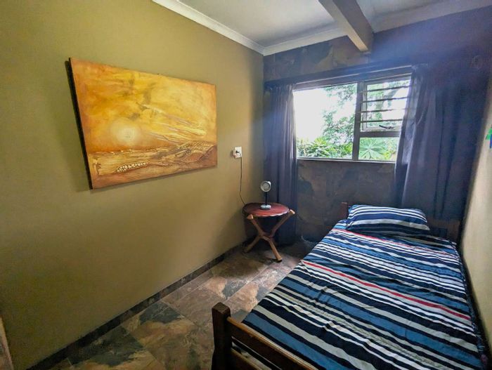 Peaceful Kloof retreat for a single professional, set on landscaped grounds with distant ocean views. Large undercover patio with built-in braai, private back garden, two bedrooms and study.