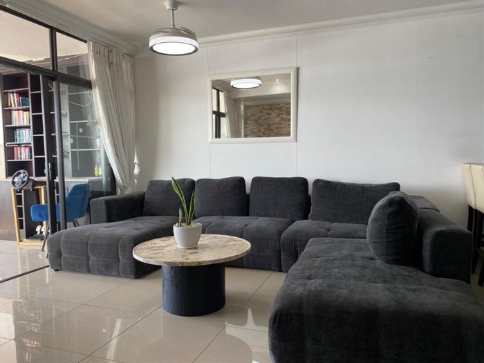 Wake to ocean sunrises in La Mercy — effortless coastal living 20 minutes from King Shaka, renovated open-plan apartment with 180° sea-view balcony, two beds, two baths, secure parking.