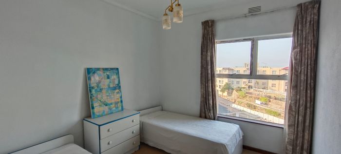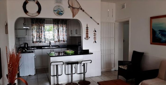 Coastal living with sea views from a private half-awning balcony; open-plan lounge and kitchen perfect for entertaining. Family-friendly complex with play area and braai. Two beds, two baths, covered parking.