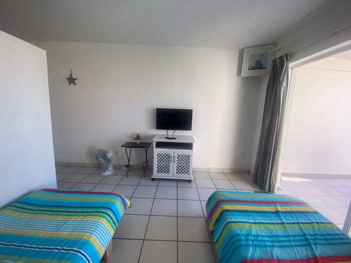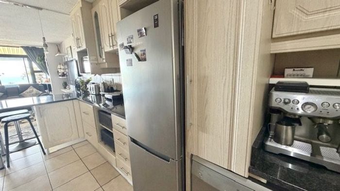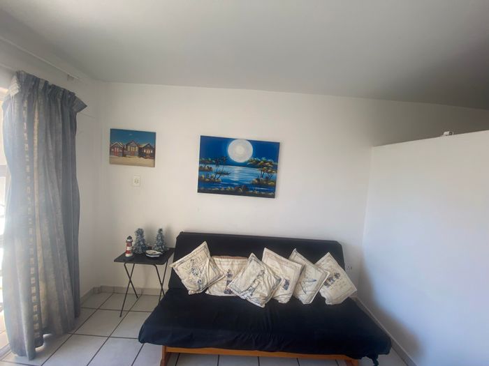 Relax in holiday-style coastal living on Uvongo’s pier-side walking strip, minutes from the CBD; top-floor, fully furnished two-bedroom, one-bath apartment with modern oak kitchen and 180° sea-view balcony.