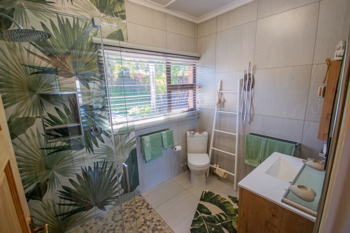 Enjoy tranquil Uvongo hillside living with distant sea views, landscaped gardens, pool and braai — ideal for entertaining or B&B use. Rainwater harvesting, workshop, two garages.