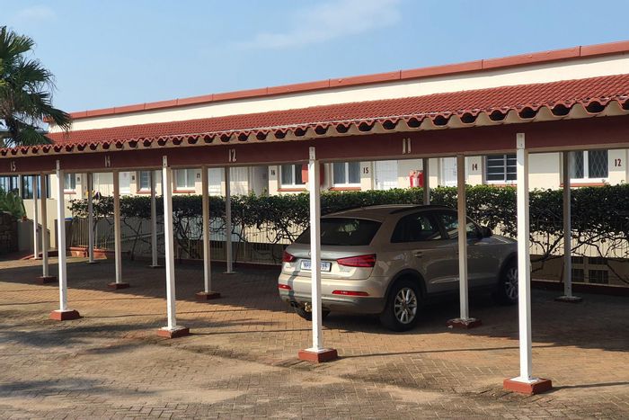 Coastal convenience in Uvongo — walk to waterfalls, lagoon and beaches. Open-plan, low-maintenance sectional ideal for pet owners; includes two bedrooms, one bathroom and covered parking.