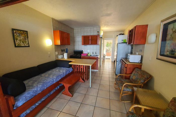 Seaside living 300m from Blue Flag Ramsgate beach — this ground-floor two-bedroom, one-bath unit opens onto a private garden with built-in braai, pet- and wheelchair-friendly.