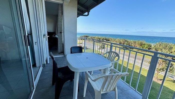 Wake to sunrise breakfasts on a sea-view balcony with built-in braai, moments from Lilliecrona Boulevard linking Uvongo to Manaba Beach. Pet-friendly, communal pool; 2 beds, 1 bath, double garage.