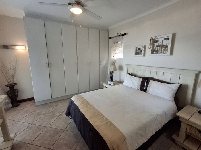 Relax in beachside Manaba Beach, Margate — secure sectional-title living with easy sea access, sparkling pool, furnished interiors, two bedrooms, two baths and single garage.