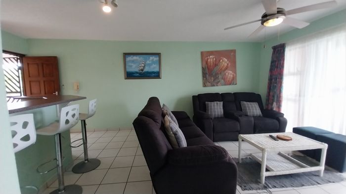 Ground floor unit near Uvongo Beach: 3 bedrooms, 2 bathrooms, 1 garage, 129 m². Pet-friendly with communal pool access.