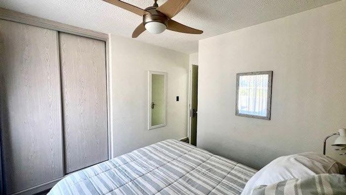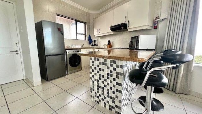 Two-bedroom apartment near Uvongo Main Beach, featuring a large kitchen, balcony, and communal facilities. Fully furnished, move-in ready.