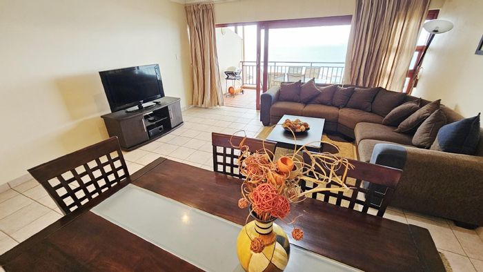 Sun-soaked coastal living moments from Margate's main beach and historic pier, with a spacious balcony overlooking the ocean, pool and braai area — three beds, two baths, two covered parking bays.