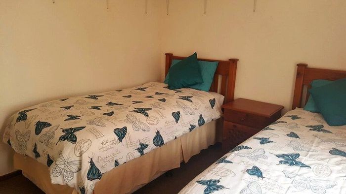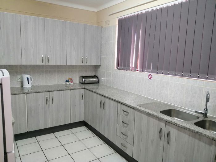Elegant 2-bedroom beachfront unit, ideal for holidays or rentals, with pool, braai area, spacious rooms, and garage parking.