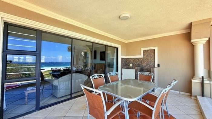 Seaside living in Uvongo, steps to the beach and local eateries, open-plan lounge to private garden and ocean-view balcony. Secure complex with pool; 3 beds, 2 baths, single garage.