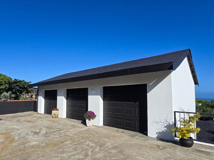 Relaxed seaside lifestyle in Uvongo, footsteps from Lucien Beach and coastal paths; open-plan living with seamless indoor-outdoor flow and 180-degree ocean views — five beds, three baths, double garage.