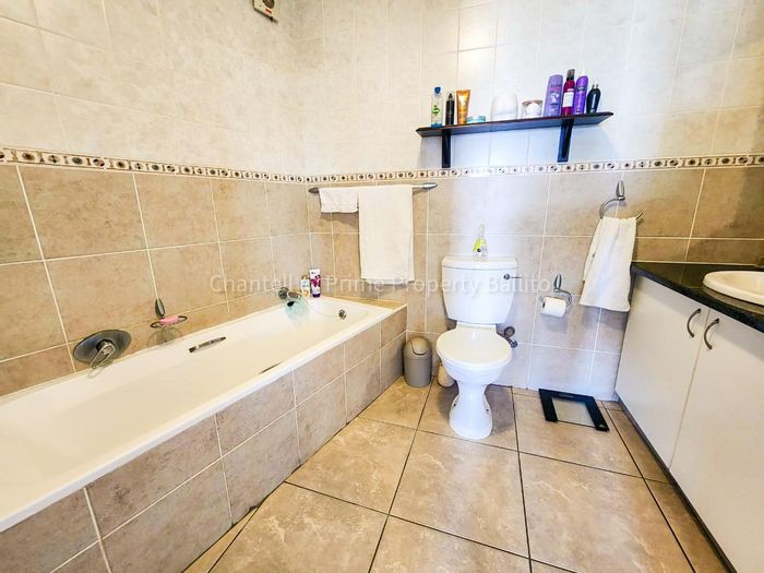 Enjoy relaxed coastal living in Uvongo Beach's quiet, exclusive complex, with ocean breezes and manicured gardens. Open-plan living, covered patio, three bedrooms, two-and-a-half baths, double garage.