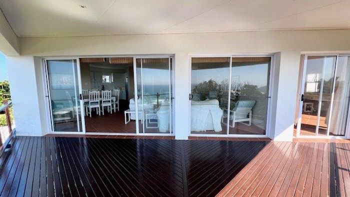 Relaxed seaside lifestyle in Uvongo, footsteps from Lucien Beach and coastal paths; open-plan living with seamless indoor-outdoor flow and 180-degree ocean views — five beds, three baths, double garage.