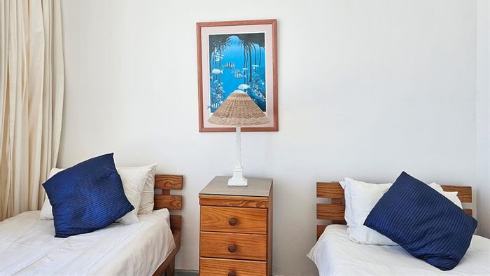 Beachside lock-up-and-go lifestyle steps from Ramsgate's Blue Flag Beach, with private garden and built-in braai, light open-plan living, two bedrooms and allocated parking.
