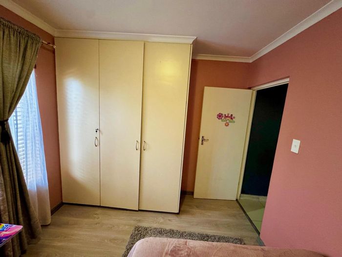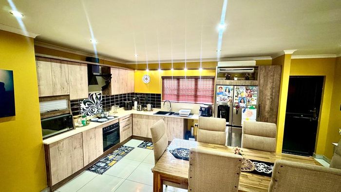 Family-focused townhouse in a secure, well-kept complex near schools and shopping, with open-plan living flowing to a sleek modern kitchen and children's jungle gym; three beds, two baths, single garage.