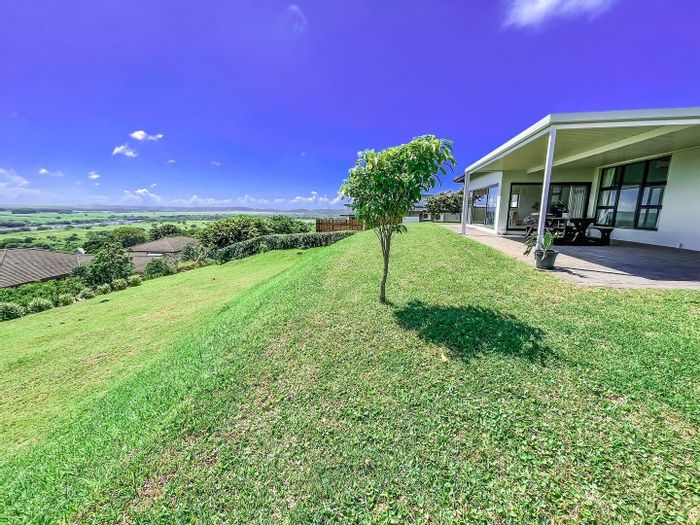 Coastal sanctuary in peaceful Mtunzini with sunlit corner gardens, distant sea views, pool and undercover entertainment patio — includes one‑bed flatlet, spacious living, 4 beds, 3 baths, double garage.