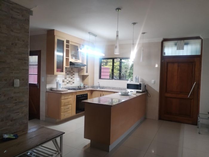 Entertainer's family retreat on 2001 m² in peaceful surrounds with warm wooden ceilings, two fireplaces and a modern granite kitchen. Income-generating flatlets; four beds, three baths and four covered parking.