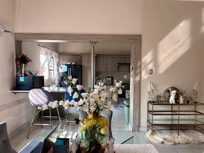 Effortless family living in Amiel Park's secure, leafy suburb — seamless indoor-outdoor flow to a sunny patio and garden for weekend braais; four bedrooms, two-and-a-half bathrooms and triple garage.