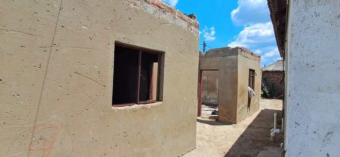 Three bedrooms, one bathroom, 375 m² land size, and two covered parking spaces. Unfinished outbuilding for potential conversion.